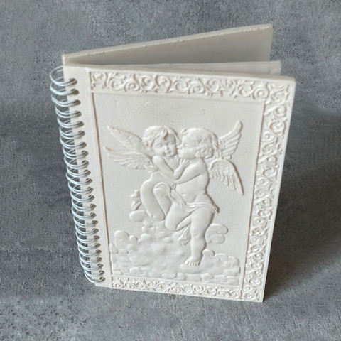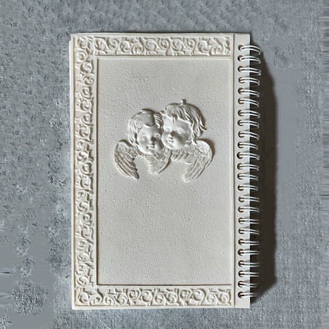 Фигурки ангелочков как маленькие презенты по разным поводам прочно вошли в нашу жизнь. Мы предлагаем вашему вниманию не совсем обычного ангелочка, а именно блокнотик с обложкой из полистоуна с барельефом ангела. В таком блокноте 30 листов, на которые можно записать самые важные, самые милые даты в своей жизни. Такой блокнотик отличный сувенир на крестины, ответки, день рождения, свадьба, рождество и новый год, день святого Валентина - практически универсальный презент на любой случай.