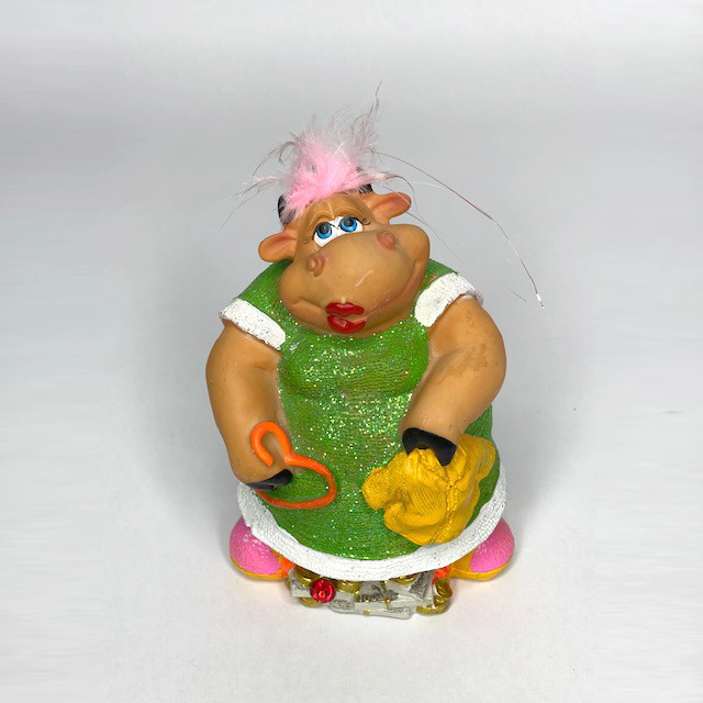 Копилка Корова с помадой, сумочкой или вяжущая носок - оригинальный сувенир и яркий предмет декора, который понравится человеку с чувством юмора. В новом 2021 году Корова является символом года.