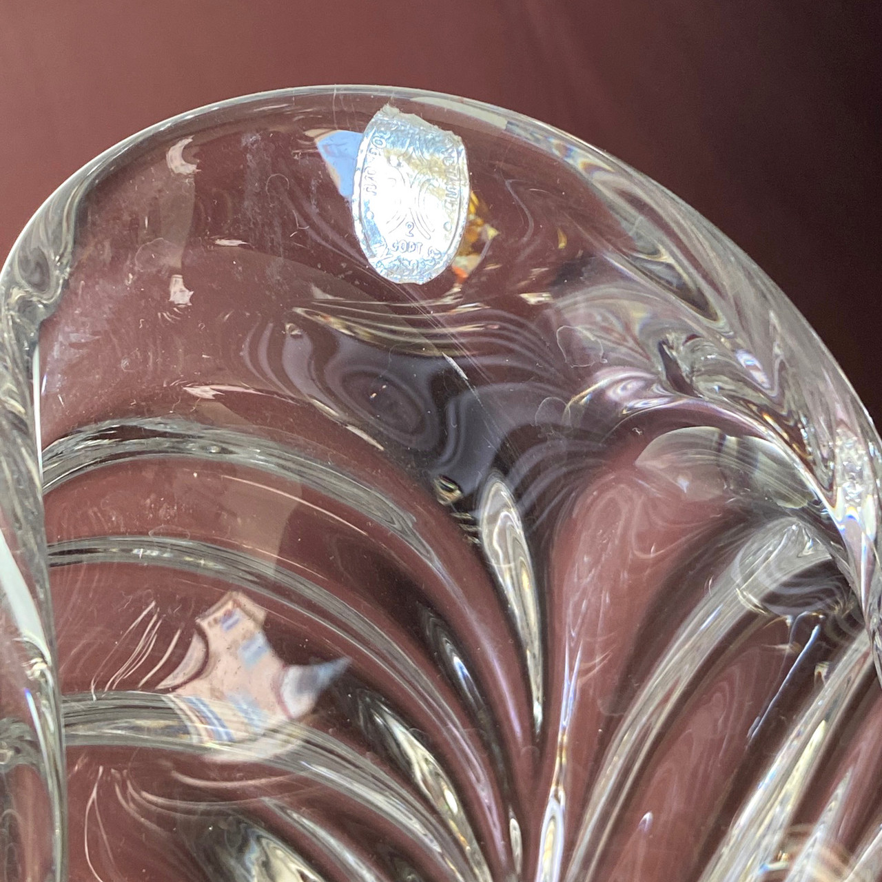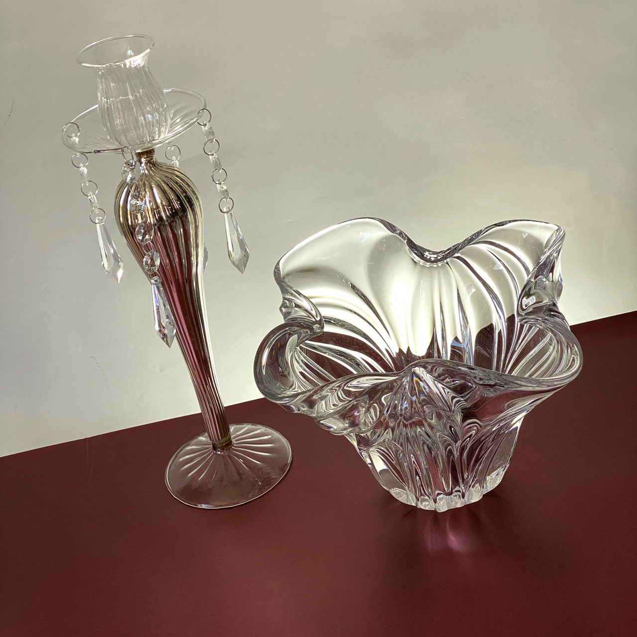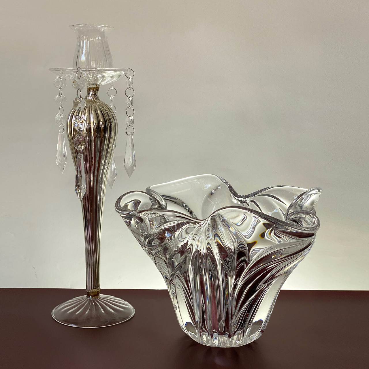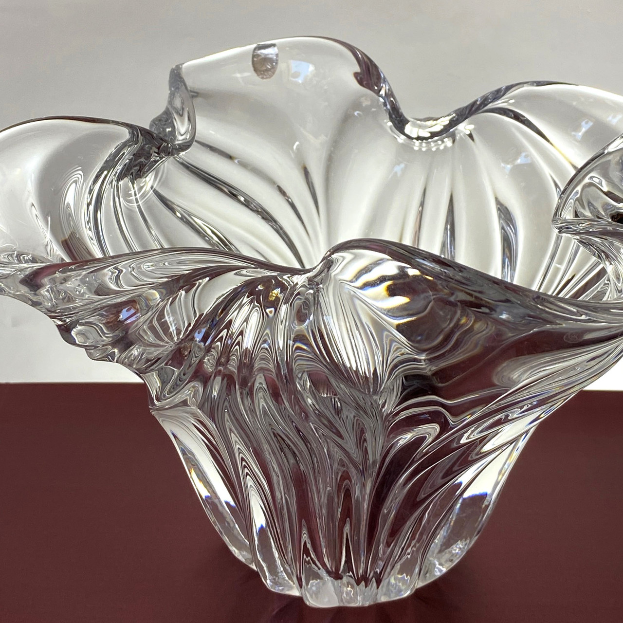 Ваза из бесцветного хрусталя, сделанная в 70х гг. прошлого века на Ленинградском заводе художественного стекла. Автор Х.М. Пыльд. По своей форме она действительно напоминает причудливый цветок, а её плавные гибкие линии ассоциируются с водной стихией. Высота вазы 14,5 см, ширина - 23,5*24 см. В вазе будут великолепно смотреться не только тюльпаны, но и конфеты, фрукты. Отличный подарок для ценителей прекрасного и уникального даже в мелочах.