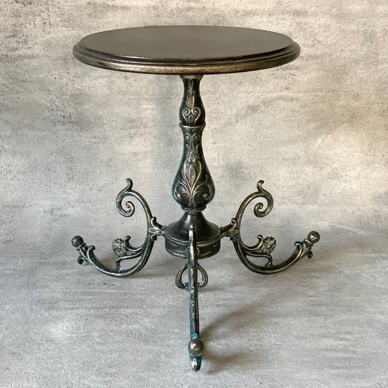 Кофейный столик или подставка для цветов? Каждый увидит то, что ему ближе. В любом случае и то, и другое вещи нужные. А когда они такие необычные и оригинальные, то вполне могут стать хорошим подарком для друзей и близких. Подножье сделано из литого металла, столешница - дерево или мдф. Столик окрашен экологичными красками и покрыт итальянским воском и стойким полиуретановым лаком. Можно производить влажную уборку. Каждый столик делается вручную и выглядит исключительно индивидуально. Размер 38,5*35*35 см, диаметр столешницы 30 см.