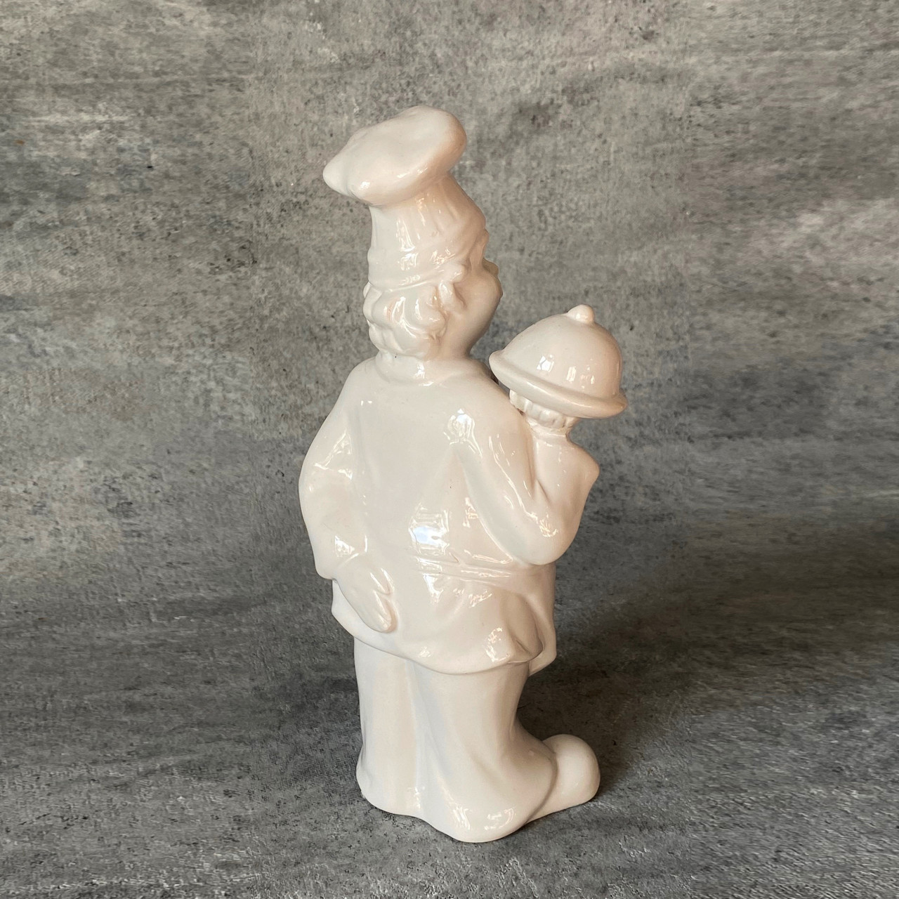 Оригинальная статуэтка белого цвета Повар с подносом. Яркий предмет декора и отличный сувенир для любителя кулинарии или профессионального повара. Материал - фарфор. Размер 24*11*7 см.