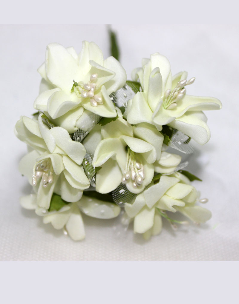 Искусственные цветочки для венков на голову и рукоделия. Пышный белый цвет придаст нарядность свадебному торжеству и праздничному столу. Свечи, бокалы, бутоньерки в петлицу, веночки на голову - далеко не весь ассортимент, где будут уместны эти дивные цветочки.